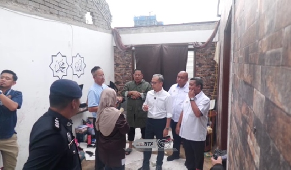 Datuk Fahmi Fadzil meninjau bumbung kediaman yang tercabut di PPR Seri Cempaka