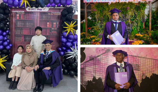 “Walau sering berulang-alik dari Bukit Aman ke USM untuk menghadiri kelas,saya tidak pernah rasa terbeban. Hari ini,semuanya terbalas,” kata ACP Kamarul Rizal sambil tersenyum,ditemani ahli keluarga yang turut hadir memberi sokongan.