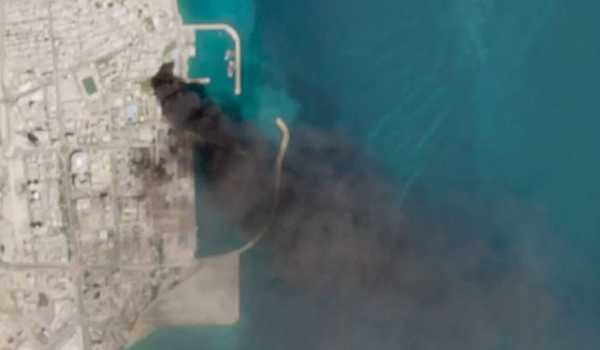 QESHM,3 April – Kepulan asap dikesan dari pelabuhan di Pulau Qeshm,Iran menerusi imej satelit susulan serangan yang didakwa berlaku antara 1 hingga 2 April.